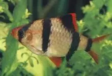 虎皮鱼又名四间鱼、品品鱼等。隶属鲤形目鲤科,热带淡水鱼类。其体高,侧扁略呈卵圆形。体呈浅黄色,背部为金黄色,背鳍、腹鳍、尾鳍和吻部均为鲜红。鱼体上有四条黑色粗带状竖纹,第一条竖纹通过眼部,…全部>>