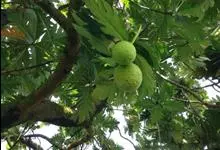 面包树 Fosberg)是桑科波罗蜜属植物。叶大,成熟之叶羽状分裂,表面深绿色,背面浅绿色;穗状花序单生叶腋,雄花序长圆筒形至长椭圆形或棒状;聚花果倒卵圆形或近球形;花期为3~5月,果期为7~10月。…全部>>
