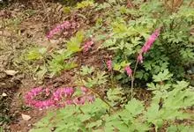 荷包牡丹 Fukuhara),是罂粟科荷包牡丹属的多年生草本植物,株高30-60厘米,具肉质根状茎;茎直立呈圆柱形;叶二回三出全裂,状似牡丹叶;总状花序顶生,基部为心形,花瓣紫红色至粉红色,稀白色,…全部>>