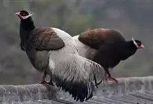 白颈长尾雉:大型鸡类,体长81厘米,体型大小和雉鸡相似。雄鸟头灰褐色,颈白色,脸鲜红色,其上后缘有一显著白纹,上背、胸和两翅栗色,上背和翅上均具1条宽阔的白色带,极为醒目;下背和腰黑色而具白斑;腹白…全部>>