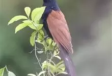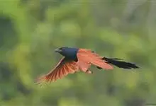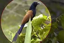褐翅鸦鹃,是鹃形目鸦鹃科鸦鹃属的鸟类。褐翅鸦鹃的身体为黑色;头颈和胸带蓝紫色金属光泽并具黑亮的羽干纹,下胸至腹部泛金属绿光泽;两翼和肩部为棕栗色,外侧飞羽具暗色羽端,尾羽闪铜绿色光泽;虹膜赤红色,…全部>>