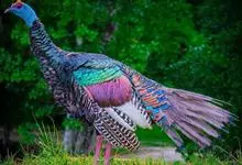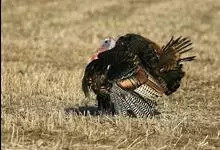 火鸡是鸡形目吐绶鸡科吐绶鸡属的鸟类。外貌独特,体躯高大、雄壮;头、颈裸露,鼻孔上部长有肉锥,头顶生皮瘤,可伸缩自如;皮瘤一般为浅蓝色,激动时肉锥变小,皮瘤变成赤红色;颈部也生有珊瑚状的皮瘤,…全部>>