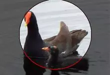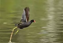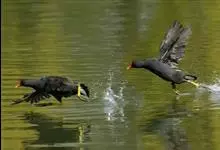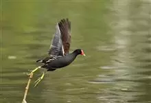 黑水鸡:是鹤形目、秧鸡科的鸟类,共有12个亚种。中型涉禽,体长24-35厘米。嘴长度适中,鼻孔狭长;头具额甲,后缘圆钝;嘴和额甲色彩鲜艳。翅圆形,第2枚初级飞羽最长,或第2枚和第3枚初级飞羽等长,…全部>>