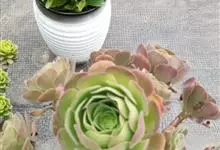 红缘莲花掌属蔷薇目、景天科植物,原产大西洋的加那利群岛。质厚,蓝绿色,被白霜,叶缘红褐色。聚伞花序,花浅黄色,有时带红晕。叶形叶色较美,有一定的观赏价值,多盆栽用于点缀室内;可放置于电视、电脑旁,…全部>>