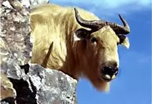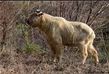 羚牛,偶蹄目牛科羚牛属哺乳动物,俗称扭角羚、野山牛、盘羊。其体形粗壮。尾短。吻鼻部隆起且裸露。前额隆起,毛短而蓬松。角基粗,由头顶长出后先向上升起,又突然翻转,靠近头部,复向外伸,然后又向后弯转,…全部>>