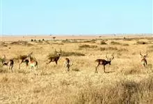 阿拉伯沙瞪羚:是偶蹄目、牛科、瞪羚属的食草动物。头尾长97厘米,身高约55-60厘米。雄性体重约为22千克,雌性性体重为18千克。雌雄都有犄角,雄性长达27厘米,雌性15厘米。体型较小。腿细长,…全部>>