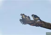 燕隼:是隼科、隼属的鸟类。体长约36厘米,体重140-340克。体形比猎隼、游隼等都小,为小型猛禽,雌鸟比雄鸟稍大;头部和颈后主要为灰黑色,颈后有一乳白色领斑;上体其余部分羽毛灰色,尾部稍淡,…全部>>