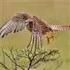 红隼:是隼科、隼属的小型猛禽之一。体重173-335克,体长305-360毫米。翅狭长而尖,尾亦较长,外形和共同爪隼非常相似。雄鸟头蓝灰色,背和翅上覆羽砖红色,具三角形黑斑;腰、尾上覆羽和尾羽蓝灰色,…全部>>