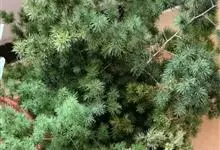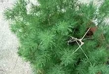 蓬莱松是天门冬科、天门冬属多年生丛生草本植物。宿存,圆柱形肉质根,纵截面为绿色和表面灰色。植株高可达3米。茎呈圆柱形或近四边形,底部木质化,具有灰色或灰褐色。幼嫩的茎在每个节上都被紫绿色鳞片包,…全部>>