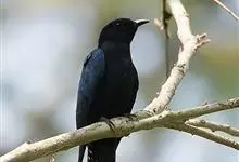乌鹃:是杜鹃科、乌鹃属的小型鸟类,体长23-28厘米,通体黑色,尾呈浅叉状,尾下覆羽和外侧尾羽具白色横斑,在黑色的尾部极为醒目。下体黑色,微带蓝色或辉绿色。虹膜褐色或绯红色,嘴黑色,脚灰蓝色。…全部>>