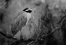夜鹭是中型涉禽,体长46-60厘米。体较粗胖,颈较短;嘴尖细,微向下曲,黑色;胫裸出部分较少,脚和趾黄色;头顶至背黑绿色而具金属光泽;上体余部灰色;下体白色;枕部披有2-3枚长带状白色饰羽,下垂至背上,…全部>>