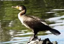 普通鸬鹚是属于鲣鸟目鸬鹚科鸬鹚属鸟类,又名水老鸦、鱼鹰、乌鬼、黑鱼郎等。体长720—900毫米,雌雄同型。通体黑色,有绿褐色金属光泽;喙厚重,喙基和喉囊橙黄色,脸颊及喉白色;夏羽颈及头饰具白色丝状羽,…全部>>