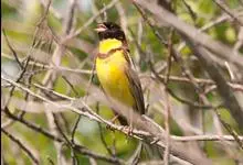 黄胸鹀是雀形目雀科鹀属鸟类,又名黄胆、禾花雀。雄鸟额、头顶、颏、喉黑色;头顶和上体栗色或栗红色;尾黑褐色,外侧两对尾羽具长的楔状白班;两翅黑褐色,翅上具一窄的白色横带和一宽的白色翅斑;下体鲜黄色,…全部>>