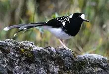 白额燕尾是雀形目鸫科燕尾属鸟类,又叫水鸦雀、白冠燕尾、黑背燕尾。前额至头顶具白斑,头余部、颈、背、喉及胸黑色,腰、腹部及尾下覆羽白色,两翼黑色且具白色翼斑;尾上覆羽黑色并具白色端斑,中央尾羽最短,…全部>>