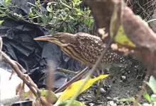 紫背苇鳽是鹭科、苇鳽属动物,为涉禽,体长约33厘米。头顶黑色,后头至尾上覆羽暗栗褐色;翅上覆羽橄榄黄色;下体浅棕黄色。多生活于水库和山脚边的稻田、芦苇丛、滩涂及沼泽草地,在西藏见于海拔2300米的农田,…全部>>