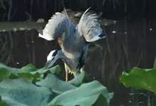 夜鹭是中型涉禽,体长46-60厘米。体较粗胖,颈较短;嘴尖细,微向下曲,黑色;胫裸出部分较少,脚和趾黄色;头顶至背黑绿色而具金属光泽;上体余部灰色;下体白色;枕部披有2-3枚长带状白色饰羽,下垂至背上,…全部>>
