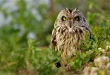 短耳鸮又名小耳木兔、田猫王、夜猫子等,是鸮形目鸱鸮科耳鸮属中小型猛禽动物。成鸟面盘显著,眼周黑色;眼先及内侧眉纹灰白色,面盘余部棕黄色杂以黑色细羽干纹;耳簇羽短小而几乎不外露,…全部>>
