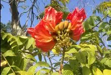 火焰木,又名苞萼木、喷泉树,为紫葳科常绿大乔木,株高10—20米,叶为奇数羽状复叶,对生,较大,斜椭圆形,全缘,纸质,叶面深绿色。 全部>>