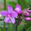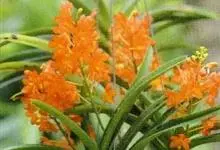 苞舌兰:假鳞茎扁球形,通常粗1-2.5厘米,被革质鳞片状鞘,顶生1-3枚叶。叶带状或狭披针形,两面无毛。花葶纤细或粗壮,长达50厘米,密布柔毛,下部被数枚紧抱于花序柄的筒状鞘;总状花序长2-9厘米,…全部>>