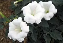 曼陀罗,茄科曼陀罗属一年生大型草本植物,全株光滑。有臭气;叶呈广卯形,边缘具不规则波状浅齿裂;花单生于枝杖间或叶腋,直立,有短梗;花萼是筒状裂片三角形,颜色为白色或淡紫色;果实为蒴果卵状,…全部>>