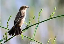 黑喉石鵖,雀形目鹟科石鵖属小型鸣禽,俗名谷尾鸟、黑喉石。其体色为黑褐色。雄鸟头部、背部、两翼及尾黑色,颈侧及翼上具白斑,胸部和腹侧红棕色,腰及尾下覆羽白色。雌鸟体色为褐色,上体具深色纵纹,胸部染棕色,…全部>>