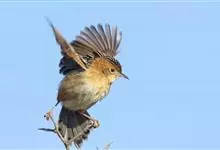 金头扇尾莺体小而具褐色纵纹的莺。嘴细长,略向下弯;翼短,体型娇小,尾长。下体皮黄,喉近白,尾深褐,尾端皮黄。雌雄羽色相近,羽色单调。繁殖期雄鸟顶冠亮金色,腰褐色。雌鸟及非繁殖期雄鸟头顶密布黑色细纹,…全部>>
