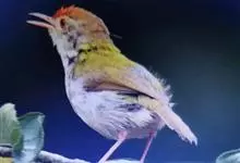 普通缝叶莺,是雀形目鹅科莺亚科缝叶莺属一种。体长10-14厘米,体重7-10克,雄鸟前额棕红,头顶至枕棕橄榄褐,上体橄榄绿染黄,飞羽及尾羽暗褐;繁殖期雄鸟的中央尾羽特形延长,下体淡皮黄白色。…全部>>