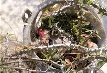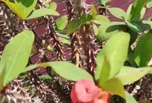 铁海棠为大戟科大戟属蔓生灌木植物;茎多分枝,具纵棱,呈旋转状;叶互生,通常集中于嫩枝上;每个花序基部边缘具微小的红色尖头;苞叶先端圆且具小尖头,无柄,上面鲜红色,下面淡红色;苞片丝状;子房光滑无毛,…全部>>