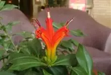 口红花 G.Don)是苦苣苔科,芒毛苣苔属常附生小灌木,茎长可达100厘米,圆柱形,叶对生,叶片革质,花数朵簇生茎或短枝顶端,花萼钟状筒形,花冠桔红色,裂片中央有暗紫色斑,花盘环状,蒴果线形,…全部>>