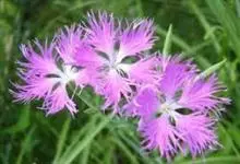 瞿麦 是石竹科、石竹属多年生草本,别名:高山瞿麦,高50-60厘米,有时更高。茎丛生,直立,绿色,无毛,上部分枝。叶片线状披针形,顶端锐尖,中脉特显,基部合生成鞘状,绿色,有时带粉绿色。包于萼筒内,…全部>>