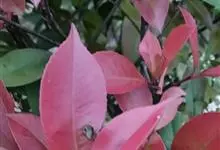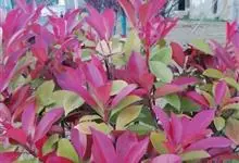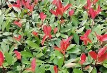 红叶石楠 是蔷薇科,石楠属杂交种,为常绿小乔木或灌木,乔木高可达5米、灌木高可达2米。叶片革质,长圆形至倒卵状、披针形,叶端渐尖,叶基楔形,叶缘有带腺的锯齿,花多而密,复伞房花序,花白色,梨果黄红色,…全部>>