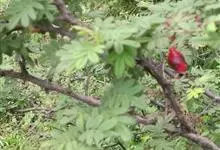 金樱子为常绿攀援灌木,高可达5米。小枝粗壮,散生扁弯皮刺,无毛,幼时被腺毛,老时逐渐脱落减少。小叶革质;小叶片边缘有锐锯齿;小叶柄和叶轴有皮刺和腺毛;托叶离生或基部与叶柄合生,边缘有细齿,齿尖有腺体。…全部>>