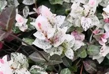 花叶络石是夹竹桃科,络石属常绿木质藤蔓植物,全株具白色乳汁,叶对生,具羽状脉。花序聚伞状,花白色或紫色;花萼5裂,裂片双盖覆瓦状排列,花萼通常腺体顶端作细齿状;花冠高脚碟状,雄蕊着生处膨大,喉部缢缩…全部>>
