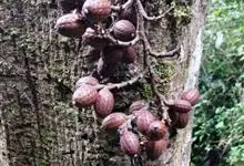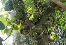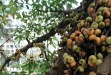 大果榕是桑科榕属的小乔木,株高可达10米;幼枝被柔毛;叶互生,宽卵状心形或近圆形;雄花无梗、匙形、花丝长,雌花生于雌株榕果内,子房白色;榕果簇生于树干基部或老茎短枝上、扁球形或陀螺形,…全部>>