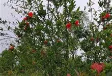 石榴是千屈菜科石榴属落叶灌木或乔木,一般植株高3-5米,少数可达到10米;枝顶常有尖锐长刺,幼枝有棱角但无毛,老枝近圆柱形;叶通常为对生,长圆状披针形;花大,…全部>>