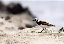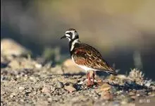 翻石鹬:体重82-135克,体长180-240毫米。体型高矮兼称,看起来十分的滑稽。它们在繁殖季时体色非常醒目,由栗色、白色和黑色交杂而成,嘴短,黑色,脚橙红色。到了冬天,翻石鹬身上的栗红色就会消失,…全部>>