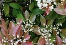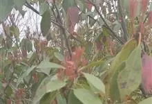 红叶石楠 是蔷薇科,石楠属杂交种,为常绿小乔木或灌木,乔木高可达5米、灌木高可达2米。叶片革质,长圆形至倒卵状、披针形,叶端渐尖,叶基楔形,叶缘有带腺的锯齿,花多而密,复伞房花序,花白色,梨果黄红色,…全部>>