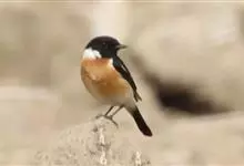 黑喉石鵖,雀形目鹟科石鵖属小型鸣禽,俗名谷尾鸟、黑喉石。其体色为黑褐色。雄鸟头部、背部、两翼及尾黑色,颈侧及翼上具白斑,胸部和腹侧红棕色,腰及尾下覆羽白色。雌鸟体色为褐色,上体具深色纵纹,胸部染棕色,…全部>>