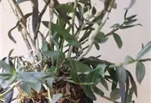 细茎石斛 Sw.)是兰科、石斛属的国家二级保护植物。茎直立,细圆柱形,具多节。叶数枚,二列,常互生于茎的中部以上,披针形或长圆形。总状花序2至数个,生于茎中部以上具叶和落了叶的老茎上,…全部>>