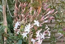 素馨花,木犀科素馨属多年生的攀援灌木植物。攀援灌木,小枝圆柱形,具棱或沟;叶对生,叶轴常具窄翼,小叶片卵形或长卵形;聚伞花序顶生或腋生,花序梗长,苞片线形,花萼无毛,裂片锥状线形,花冠白色,…全部>>
