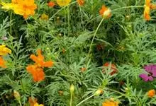 黄秋英是菊科秋英属的一年生草本植物。枝叶为对生的二回羽状复叶,裂片呈披针形;花为舌状花,有单瓣和重瓣两种,颜色多为黄、金黄、橙色,红色;瘦果棕褐色,粗糙有毛,顶端有细长喙;春播花期6-8月,…全部>>