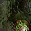 玉米石是景天科、景天属植物。多年生草本多浆植物。植株低矮丛生,多分枝。叶膨大成圆筒形、卵形或近小球形,互生至簇生,长0.6-1.2厘米,宽0.4-0.7厘米,叶端钝圆,亮绿色,肉质,硝带红晕,…全部>>