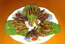 菠萝炒饭是将带皮菠萝纵切,用勺子将菠萝肉取出,切成小丁,与米饭、火腿、鸡蛋、新鲜蔬菜等一起在油锅中翻炒,…全部>>