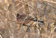 藏朱雀:全长约17-18厘米。雄鸟头部深红色具光辉,喉部暗红色具白色点斑;背部灰白色,各羽具玫瑰红色羽端,形成许多斑纹;腰部淡玫瑰红色;翅暗褐色,沾灰白,羽端沾玫瑰红或灰白色;尾暗棕色,端缘玫瑰红色…全部>>