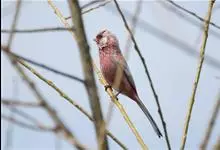 长尾朱雀:体长18厘米,体重16-26克。雄鸟额、颏和眼后为暗红色,头顶与后颈的羽端较淡;翼羽具宽阔的白色边缘与先端;形成鲜明的翼斑;外侧尾羽白色,嘴短粗呈膨胀状;雌鸟无红色,头、颊到翕带灰色,…全部>>