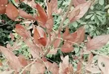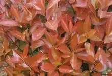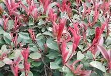 红叶石楠 是蔷薇科,石楠属杂交种,为常绿小乔木或灌木,乔木高可达5米、灌木高可达2米。叶片革质,长圆形至倒卵状、披针形,叶端渐尖,叶基楔形,叶缘有带腺的锯齿,花多而密,复伞房花序,花白色,梨果黄红色,…全部>>