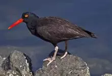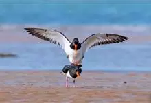 蛎鹬是鸻形目蛎鹬科蛎鹬属。蛎鹬的成鸟夏羽头、颈、胸和上体大部分为乌亮的黑色,腰到尾上覆羽白色,尾羽基部白色,端部黑色;翼上黑色,具有白横斑;下体胸部以下白色,翼下白色带黑缘;虹膜红色,啄和眼圈橘色,…全部>>