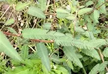 合萌,别名田皂角、水松柏、水槐子、水通草,中药名:梗通草。豆科一年生草本或亚灌木状植物,茎直立,叶对生,总状花序,腋生,花萼膜质,花冠淡黄色,子房扁平,线形。种子黑棕色,肾形,花果期7~10月。…全部>>