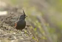 凤头鹀:属小型鸣禽,体重21-31克,体长134-175毫米。以头顶的细长羽冠为特征,雄鸟全身几乎均为黑色具蓝色光泽,两翅和尾以及尾上覆羽栗红色。雌鸟具短的褐色羽冠,上体暗橄榄褐色,…全部>>