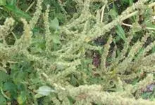 反枝苋是苋科苋属的一年生草本植物。株高达1米;茎密被柔毛;叶菱状卵形或椭圆状卵形,先端锐尖或尖凹,两面及边缘被柔毛,下面毛较密;穗状圆锥花序,顶生花穗较侧生者长;花被片长圆形或长圆状倒卵形,…全部>>